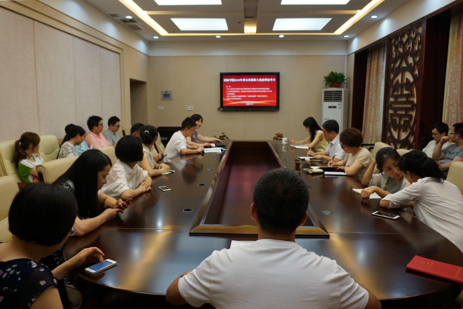 2018年7月6日下午3点,永利3044noc全体教职工在一楼签约室开展政治理论学习活动。会议由刘猛书记主持。
