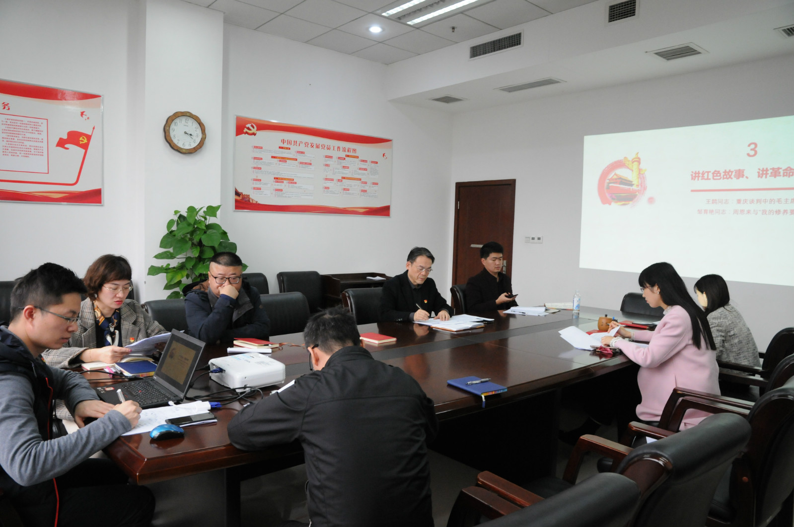 20191115日下午300,教工二支部全体党员在永利3044noc304会议室召开“对照党章党规找差距”主题党日活动,之后按照公司要求召开了组织生活会并进行了党员民主评议。支部在活动之前号召全体同志再次自学了《中国共产党章程》《中国共产党廉洁自律准则》《关于新形势下党内政治生活的若干准则》和《中国共产党纪律处分条例》等文件;会上,王鹊同志和邹育艳同志分别分享了“重庆谈判中的毛主席”和“周恩来与‘我的修养要则’”等红色故事,同志们在伟人光辉事迹的感召下,更加坚定了政治信念,提高了思想觉悟。此后,二支部召开了“不忘初心 牢记使命”专题组织生活会,李林泽书记代表教工二支部支委进行了述职,刘猛书记和王静副书记进行了点评,并就支部整体工作谋划、支部建设工作推进、党风廉政建设工作、党建和业务融合等四个方面指明了支部当前存在的不足和今后努力的方向。随后,支部全体党员结合“不忘初心 牢记使命”主题教育活动的学习心得和个人在查找党员意识、担当作为、服务群众、遵守纪律、作用发挥等方面的差距和整改措施进行了深入的个人自评,二支部支委分别进行了点评。最后,支部全体同志分别就支部工作和党员个人表现进行了党支部班子民主评议测评和党员民主测评。
