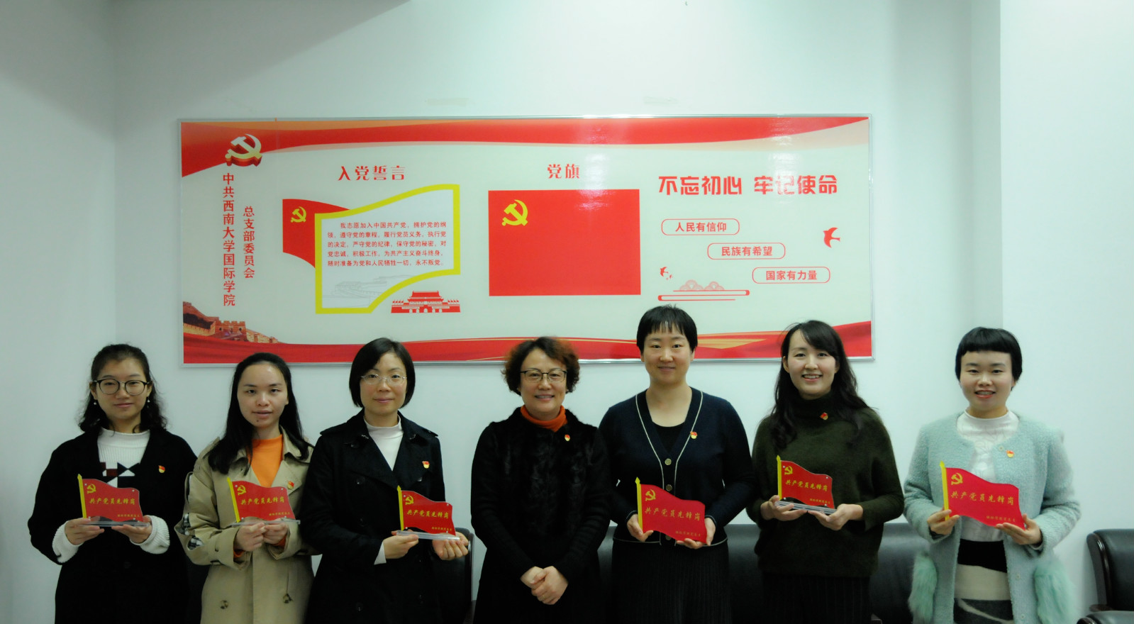 为了充分发挥党员的先锋模范带头作用,积极打造党员队伍建设新品牌,11月12日上午,国际公司党总支在紫云楼304室举行“共产党员先锋岗”授牌仪式,刘猛书记,王静经理、副书记,11名荣获“党员先锋岗”称号的党员参加仪式。
