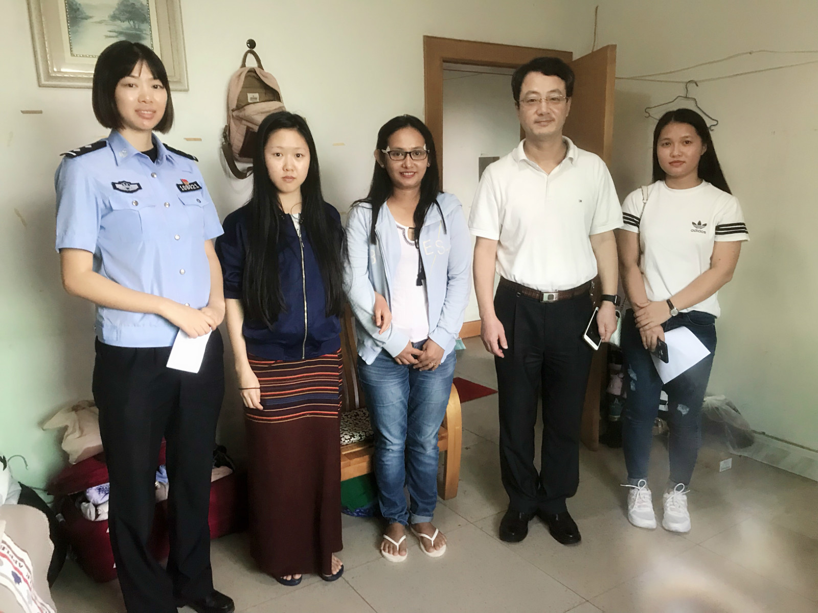 为迎接国庆节的来临,公司领导格外重视校外住宿的国际员工新生。9月26日下午,王静经理、刘猛书记、李航副经理、张家政副经理以及学工办、招生办、院办还有汉教系的相关老师带领职工会干部会同辖区民警一起看望并慰问了在校外住宿的国际员工。