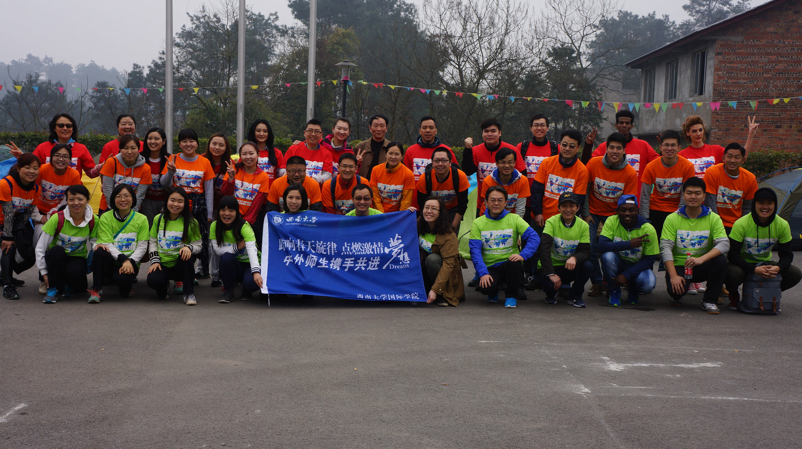 “踏响春天的旋律,点燃激情梦想”——永利3044noc中外师生户外拓展训练3月5日在巴南区樵坪村户外训练基地展开。上午八点,39名教职工和职工代表乘车前往基地。沿途春光烂漫,景色宜人。大巴车行至巴南区樵坪山,只见山峦起伏、公路蜿蜒,林海纵横。在这个森林氧吧中,所有师生顿觉空气清新,回归自然。