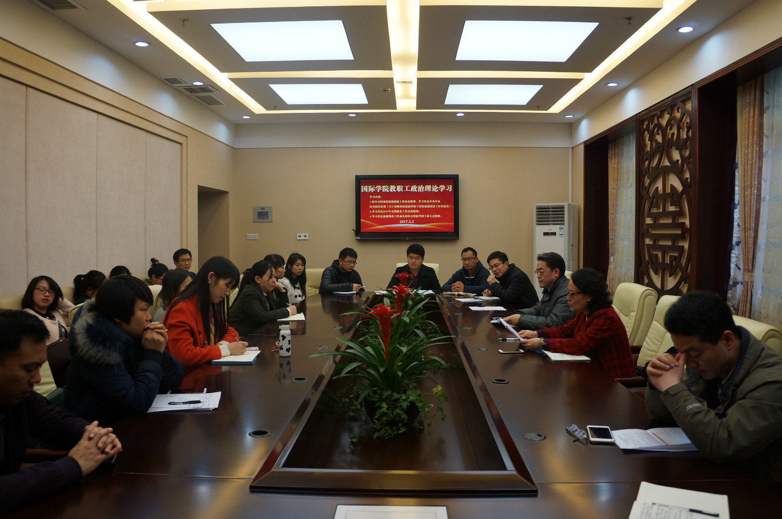 2017年3月4日下午3:00永利3044noc在紫云楼一楼签约室开展新学期的第一次政治理论学习活动,会议由刘猛书记主持。