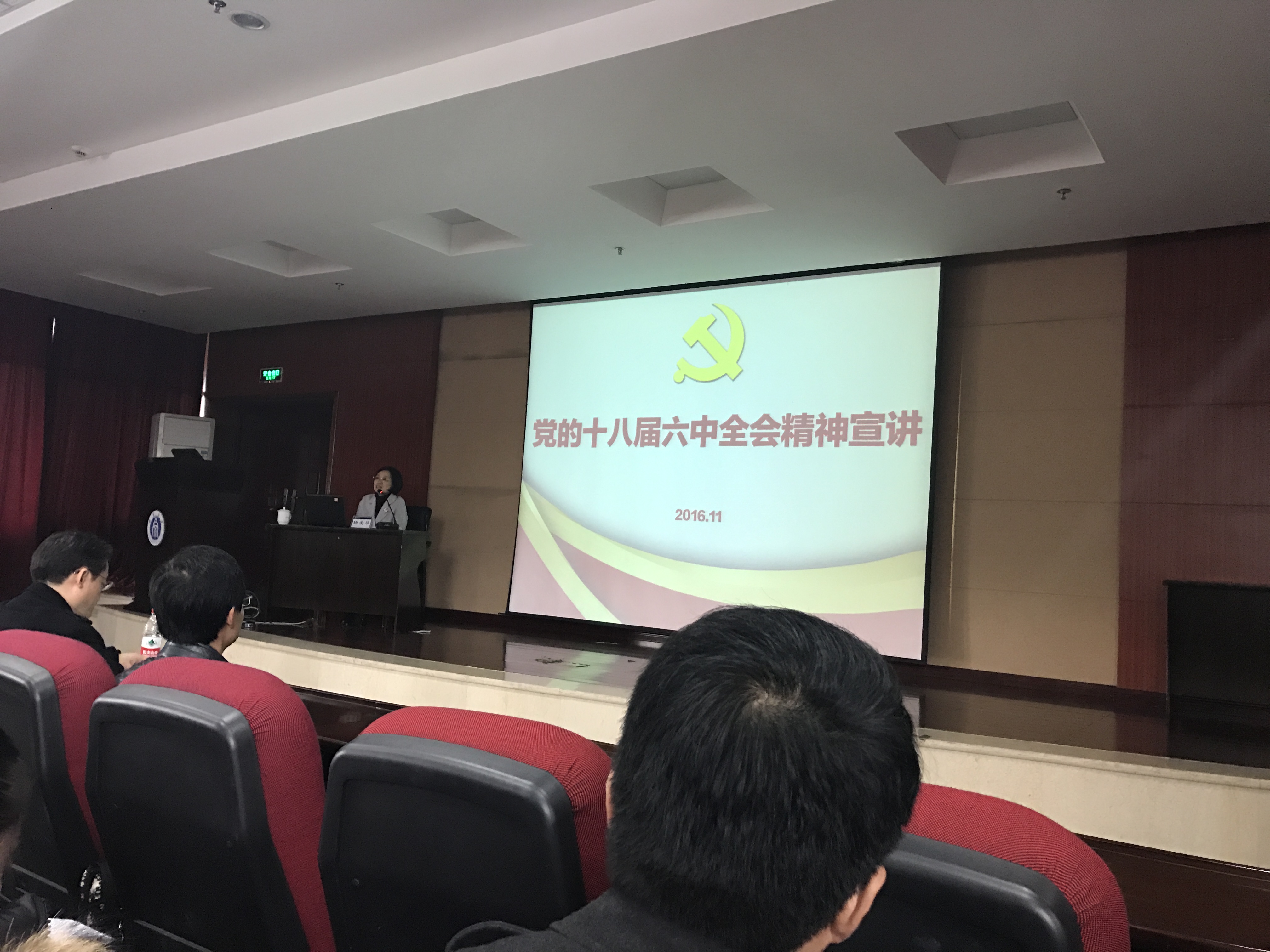 2016年12月2日下午2:30永利3044noc全体教职工在外国语公司903报告厅参加十八届六中全会精神宣讲会,主讲人为组织部部长杨爱华同志。