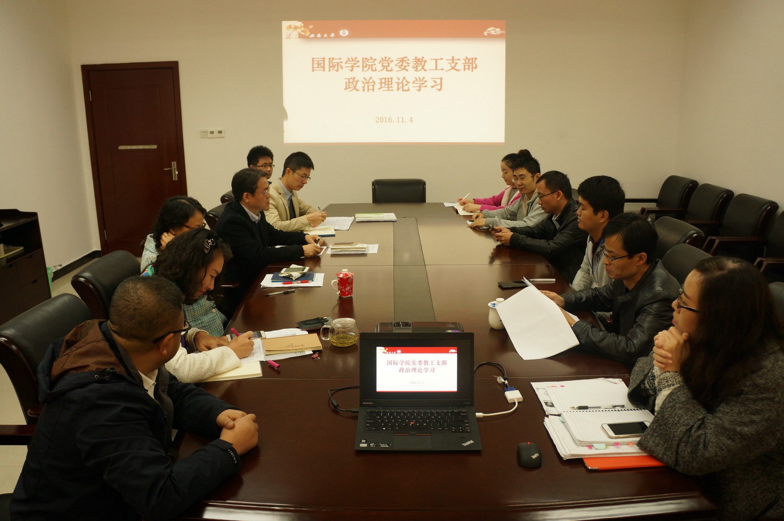 2016年11月4日,国际公司党委教工二支部组织全体行政人员开展了学习《中国共产党第十八届中央委员会第六次全体会议公报》(以下简称《公报》)专题学习活动。