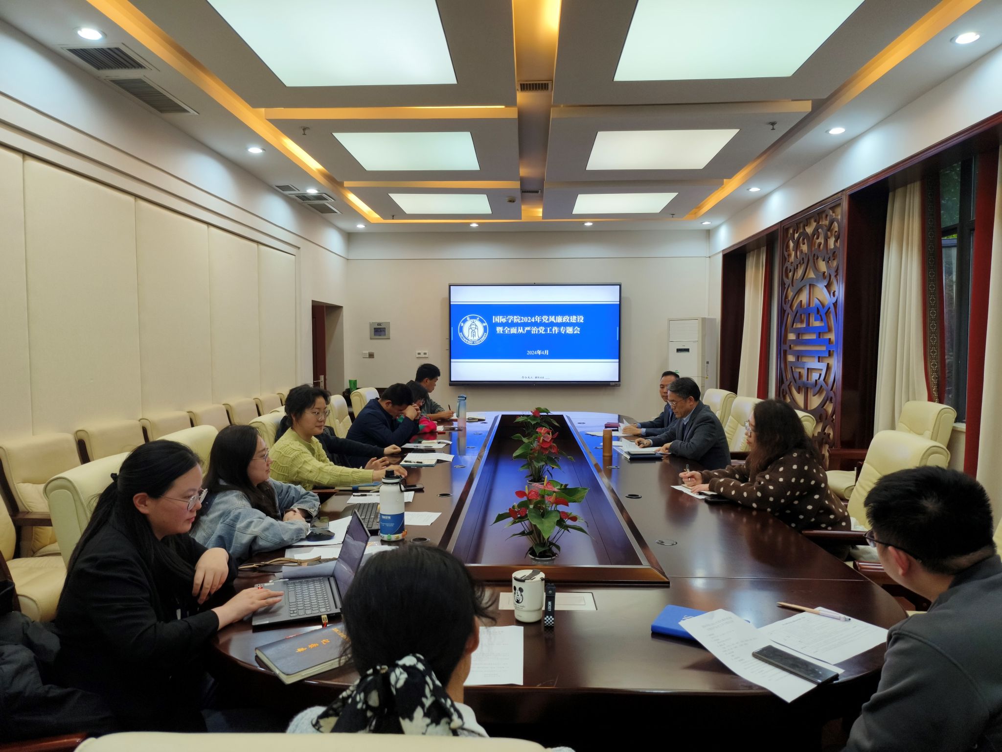 2024年党风廉政暨全面从严治党工作专题会于4月7日下午在紫云楼签约室召开,公司党委委员、各科室/系负责人、各党支部书记参加会议。会议由党委书记刘猛主持。