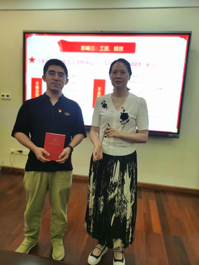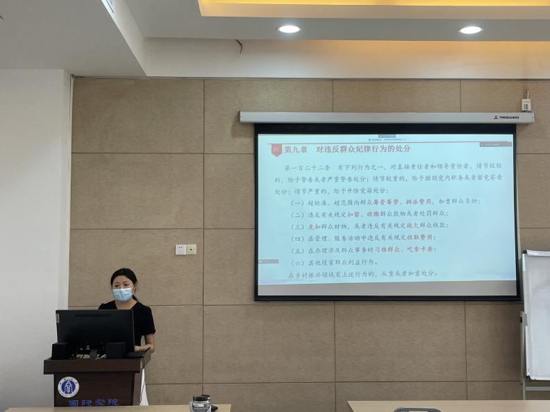6月13日下午16:30,公司研究生第一党支部及2022级入党积极分子在紫云楼310室开展“学党纪懂规矩,作遵规守纪表率”主题党日活动。