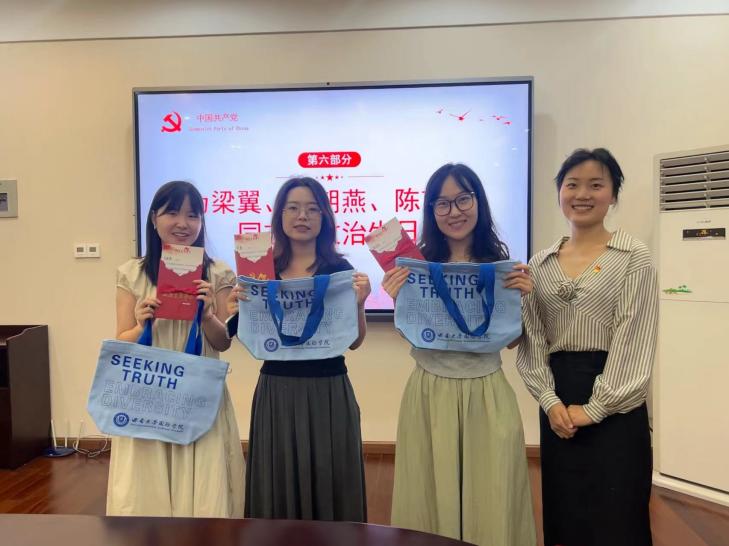 最后,支部共同为梁翼、陈苗苗、何朝燕同志庆祝政治生日。